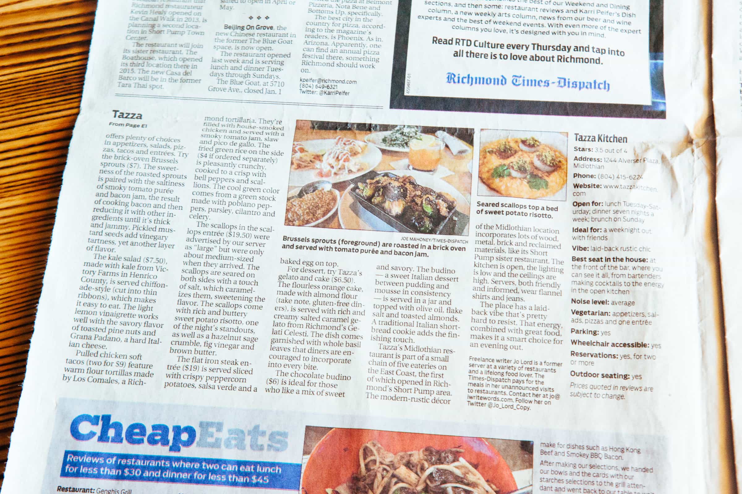 Richmond Times-Dispatch / Restaurant review: Internationally inspired, locally sourced at Tazza Kitchen in Midlothian